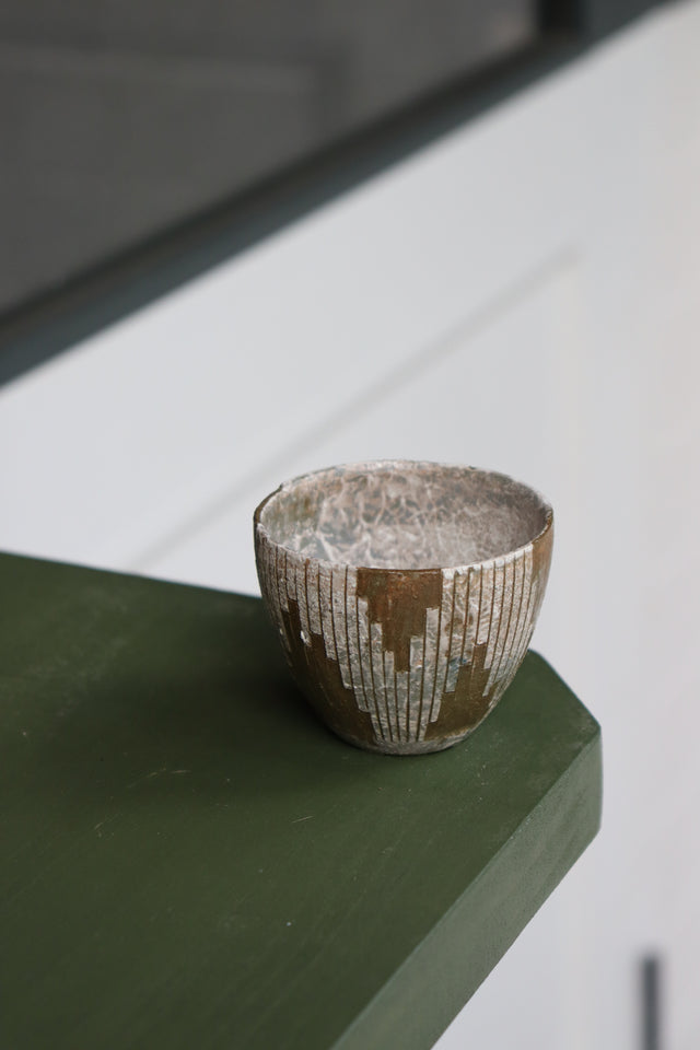 Emui: Handmade Guinomi Cup - Vertical Pattern White-Olive