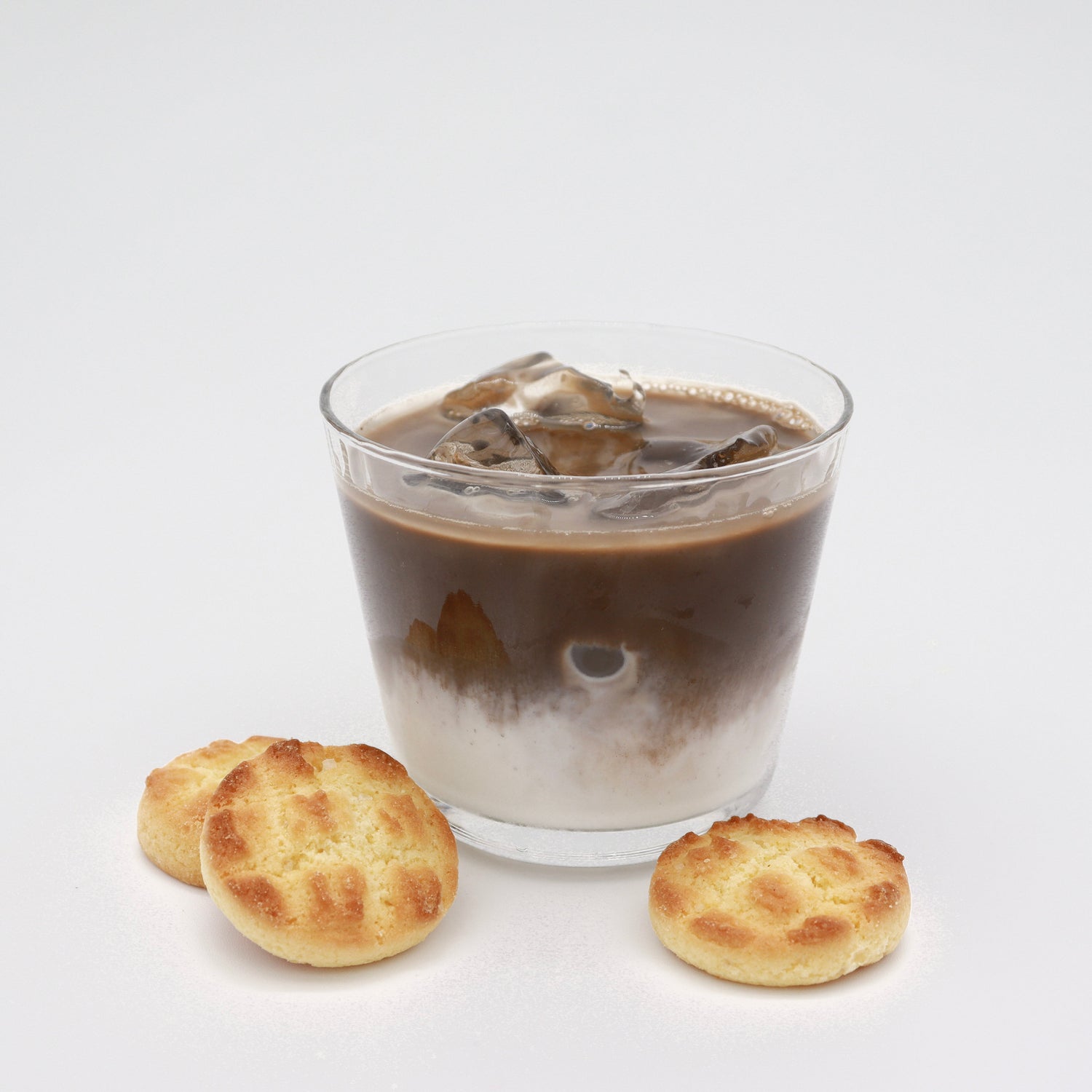 - Prepare the Glass: Fill a glass with ice cubes and milk.