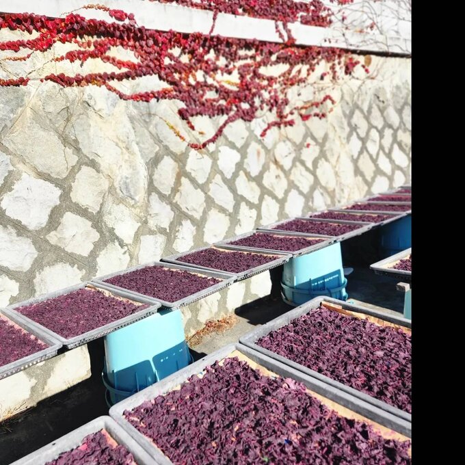Traditionally, shiso leaves are salted and rolled, squeezed of its moisture then ume vinegar and salt are added for pickling, and finally dried after pickling and crushed.