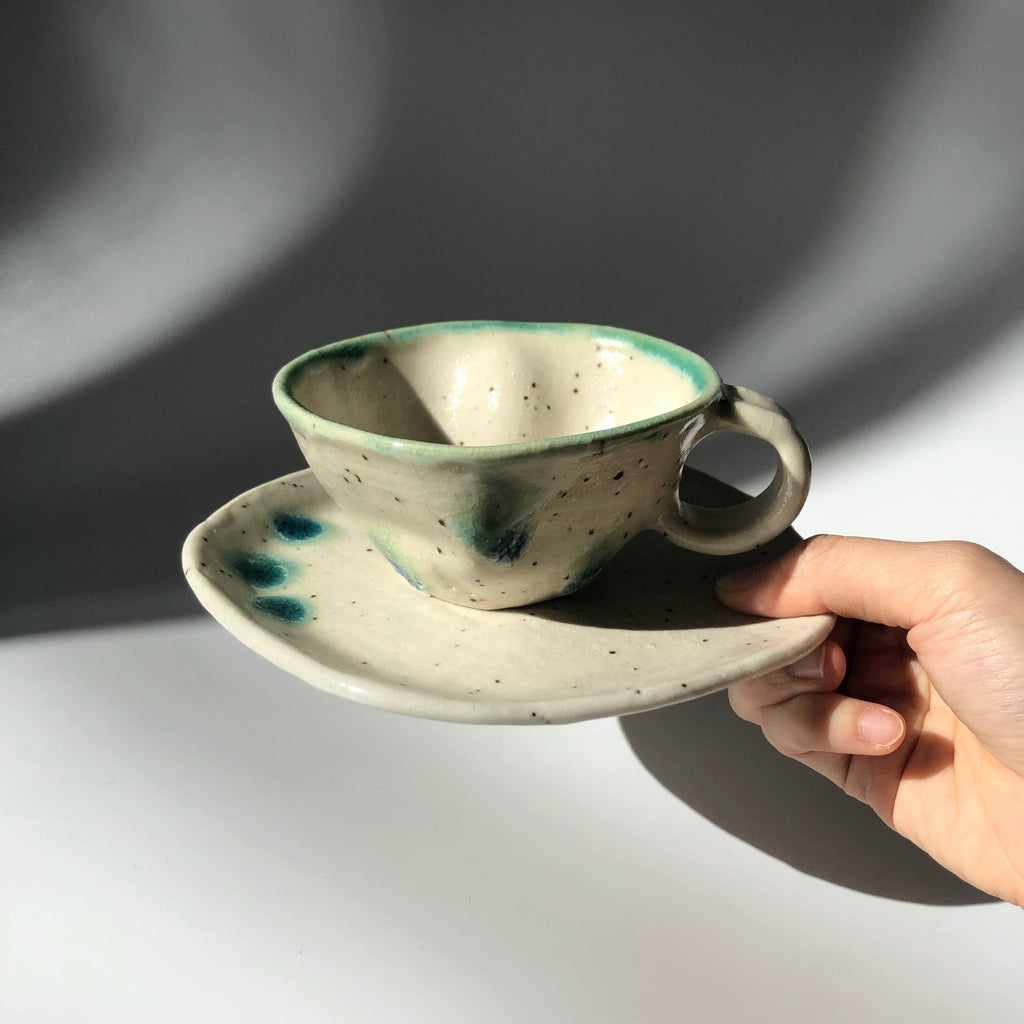 Hiroshi Hirai: Heart Shaped Cup & Saucer Set, Green Accents <-- Out of stock. PREORDER NOW. In general, procurement time is 2-4 weeks (matcha may take 2-6 months). Repacking is possible if a larger size is available (1-2 weeks).