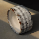 This matcha bowl features the distinctive Oni-Shino glaze, known for its rustic texture and subtle crackle effects. Combining traditional Mino-yaki craftsmanship with a bold, earthy aesthetic, it offers a unique tactile and visual experience. Perfect matcha bowl for those who appreciate classic Japanese pottery with character and depth.